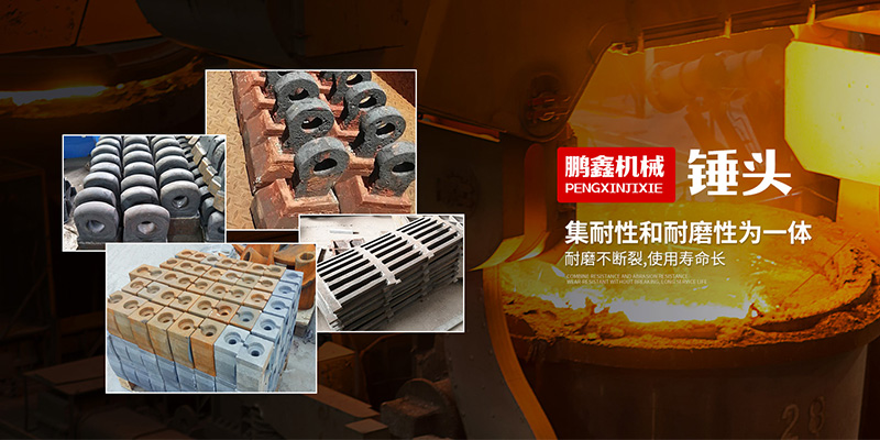 鞏義市鵬鑫鑄造有限公司主要生產制砂機錘頭、高鉻錘頭、高錳鋼錘頭、襯板、鄂板、鑄造板錘、高鉻板錘、破碎機板錘、反擊破板錘、球磨機襯板、顎式破碎機鄂板(牙板、齒板),邊護板(叉板)、肘板、對輥破碎機(雙輥破碎機)輥皮、輥殼、雷蒙磨配件(磨輥磨環)等礦山配件,還可根據客戶需要定制各種耐磨鑄件、鑄鋼件、灰鐵鑄件、生鐵鑄件,歡迎來電來函咨詢!